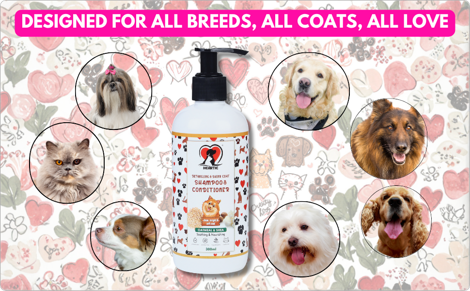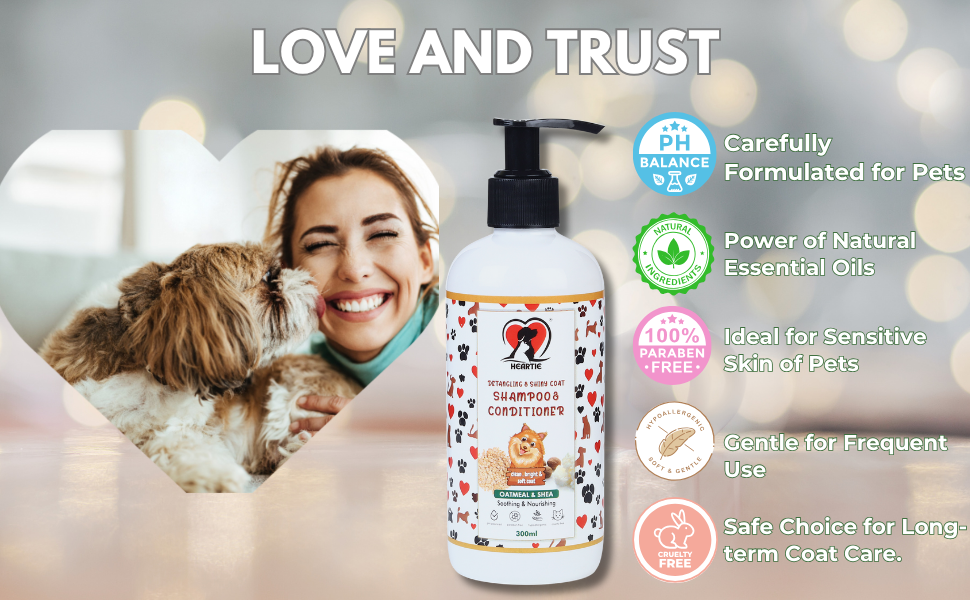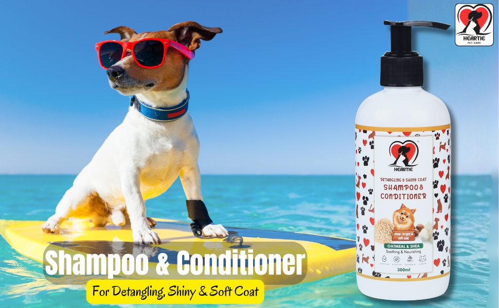 HEARTIE Oatmeal Shampoo & Conditioner for Dogs & Cats – Hair Fall Control for Cat & Dog-Shea Butter, SOYA Protein, Vitamin-E, Coconut Oil, Aloe Vera for Detangled & Shiny Coat | Paraben Free– 300ml.